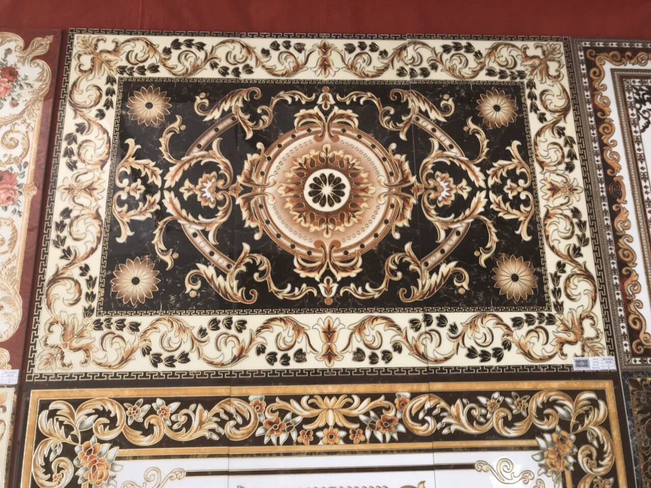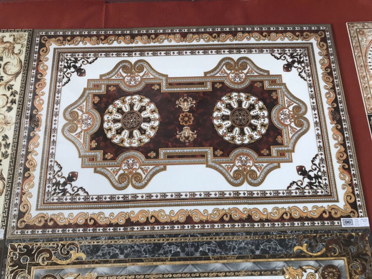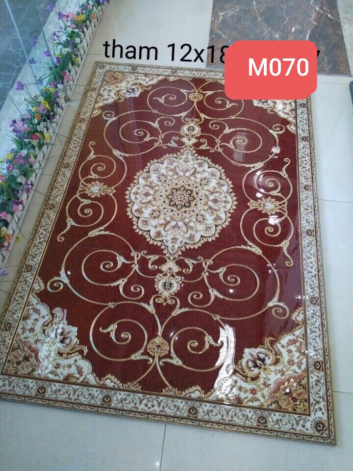Gạch thảm men sứ kính, gạch thảm khắc kim không giới hạn kích thước. Đây là dòng gạch 3D vi tinh có cấu tạo gồm 3 lớp: