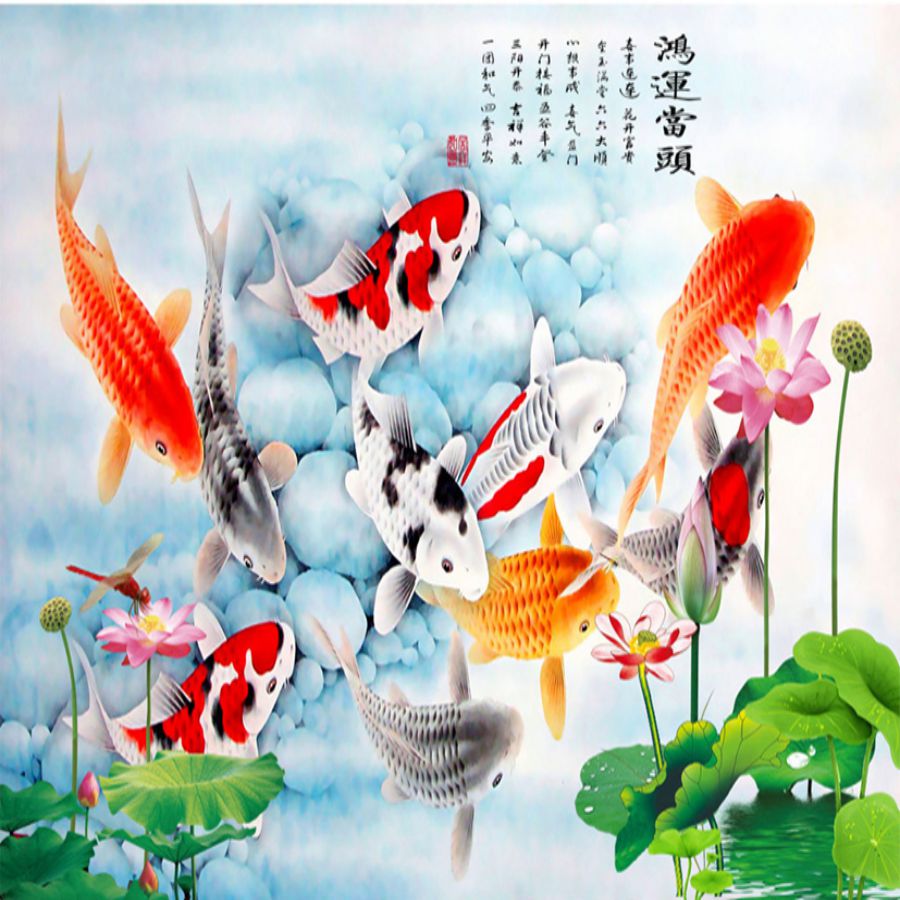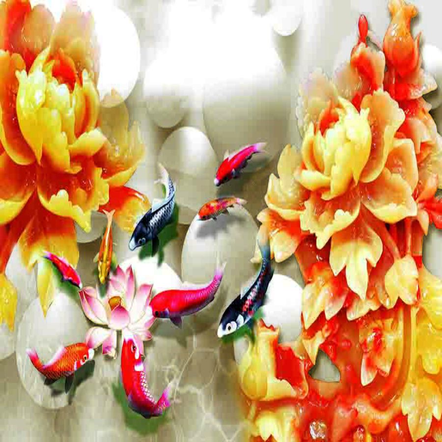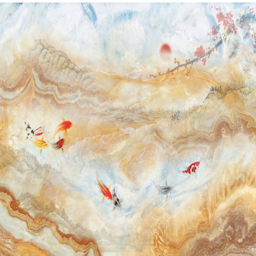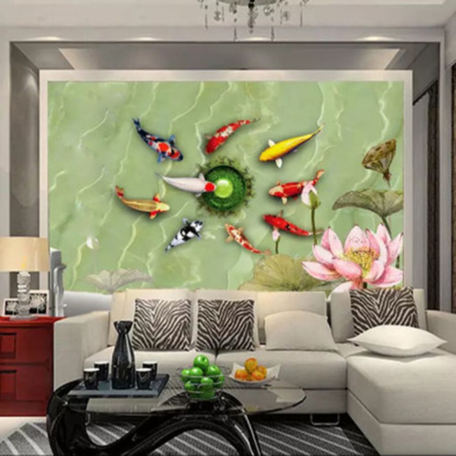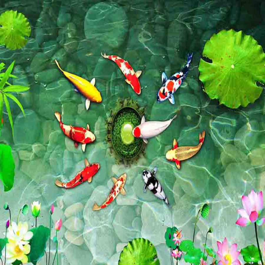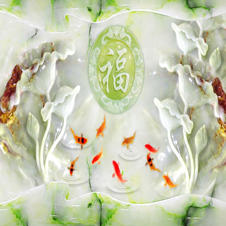 Tranh gạch 3d cửu ngư quần hội