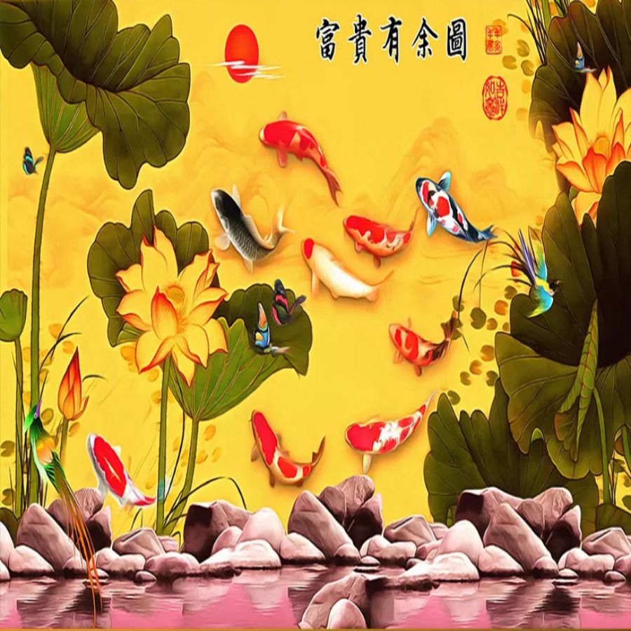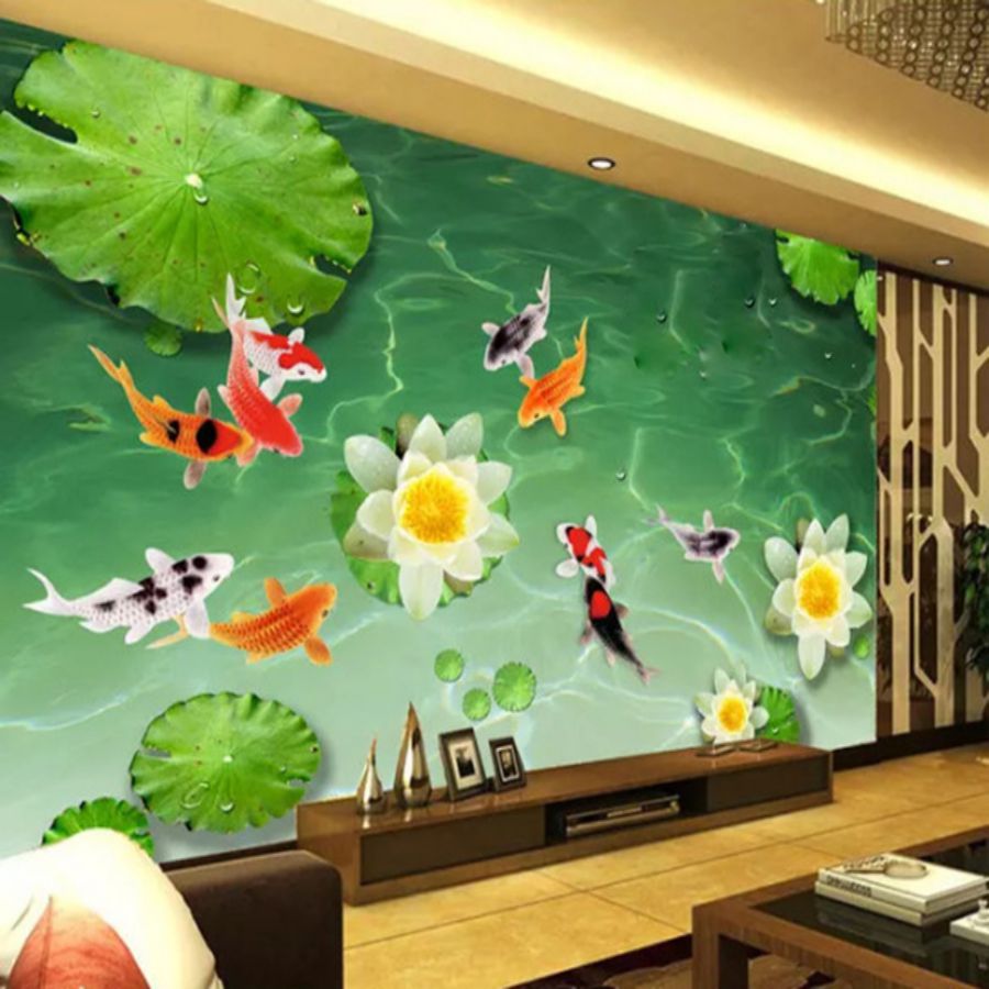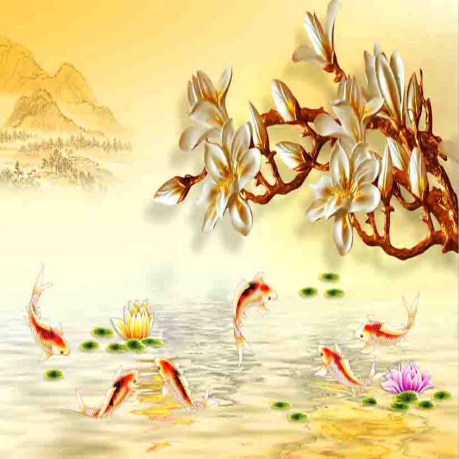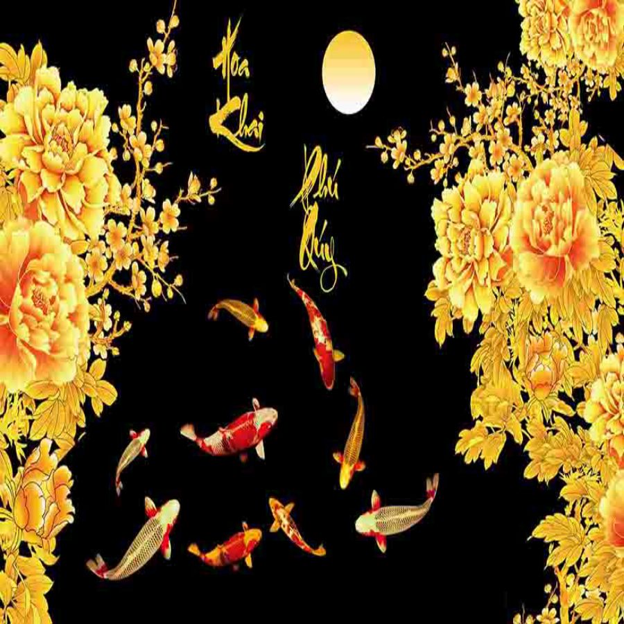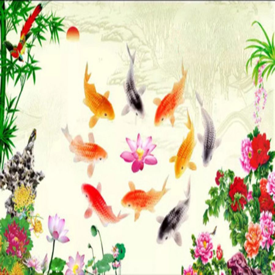 Tranh gạch 3d cửu ngư quần hội