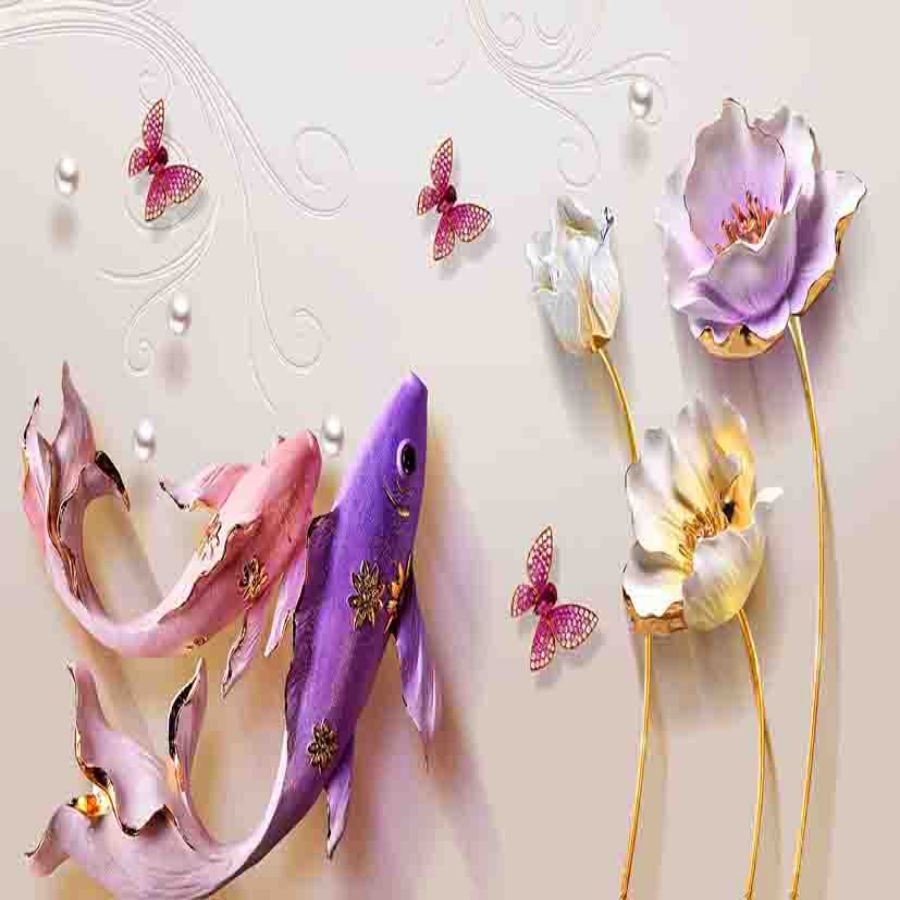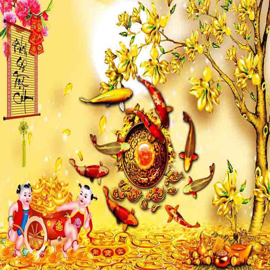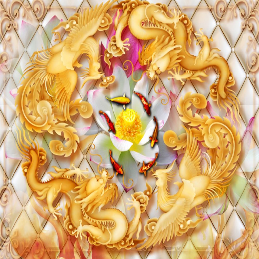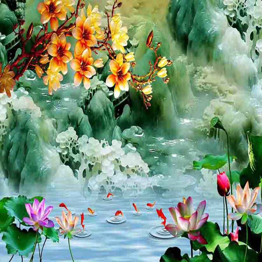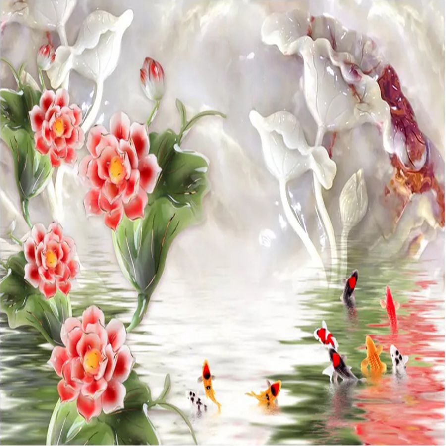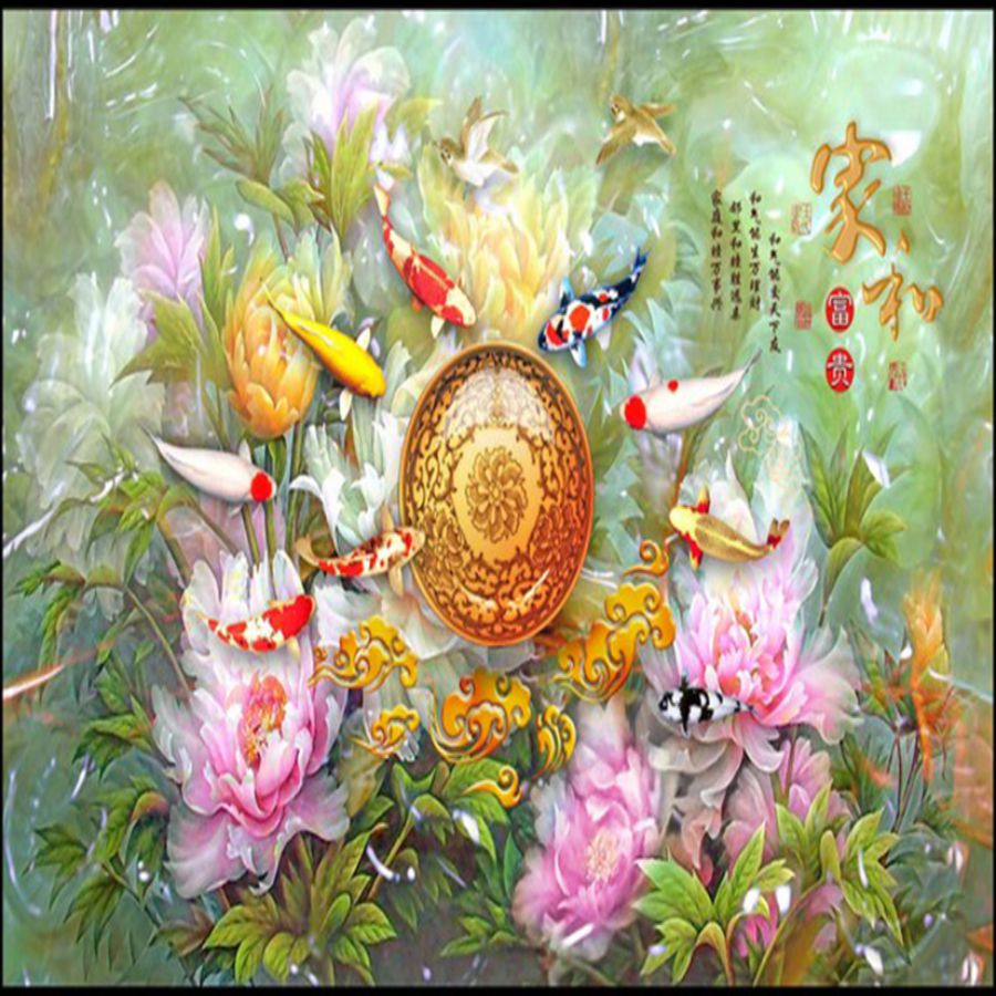 Tranh gạch 3d cửu ngư quần hội